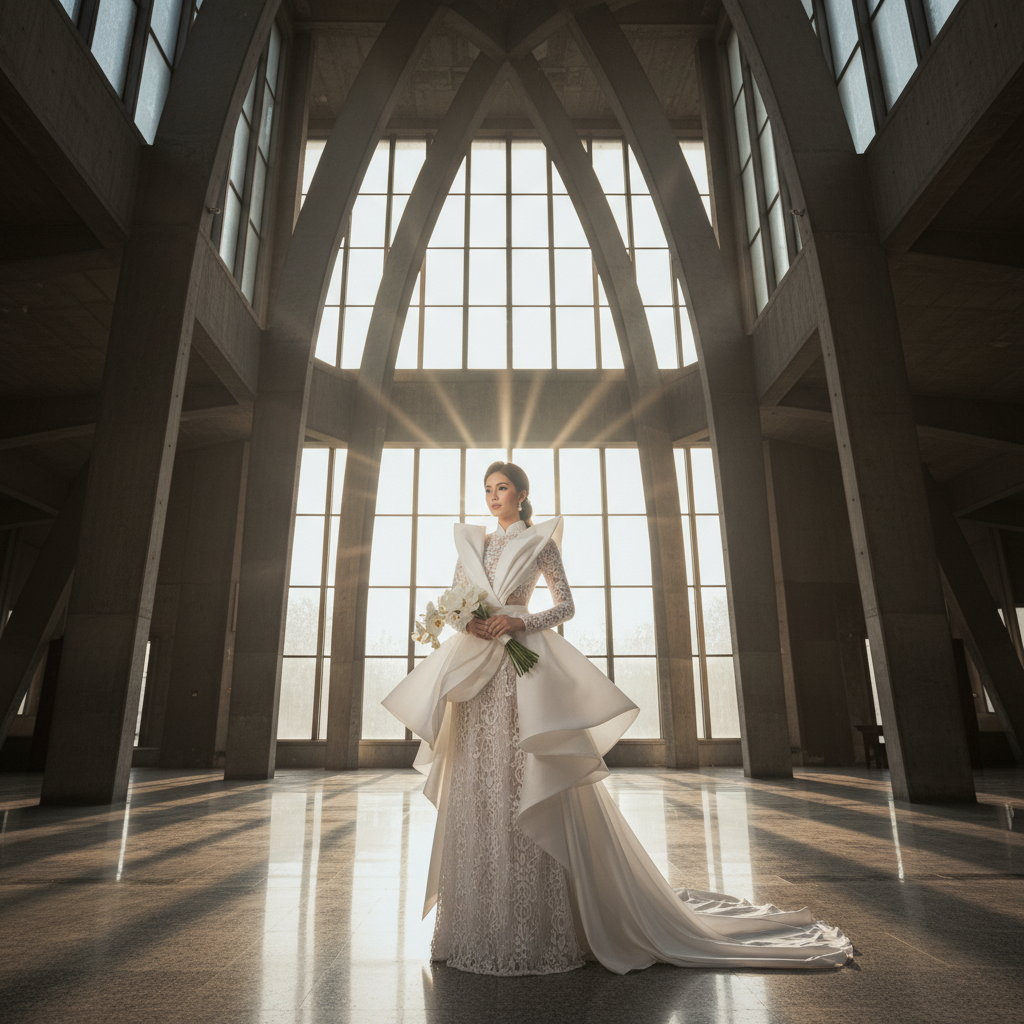 The fabric plays a vital role in how the Vietnamese wedding dress white drapes over the body and how comfortable the bride feels throughout the day. Since white can sometimes be translucent, choosing the right material is essential for both aesthetics and modesty.